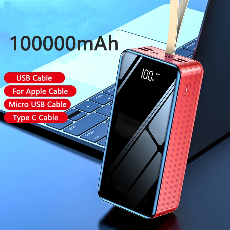 Product Name: Hohe Kapazität Power Bank 100000mAh In Kabel Power Externe Batterie Ladegerät Für IPhone 12 Samsung S21 Xiaomi Poverbank