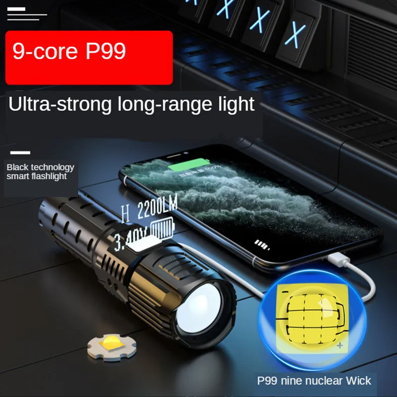 Product Name: Neue Zoom Taschenlampe 9 Core P99 Super Helle Taschenlampe USB Lade Smart Elektrische Display Aluminium Legierung High Power Taschenlampe