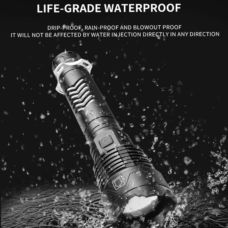 Product Name: 90000 Lumen Ultra Helle LED Taschenlampe Wasserdichte Taschenlampe Zoomable Beleuchtung XHP160 LED 5 Modi Multi-funktion USB Lade Lampe
