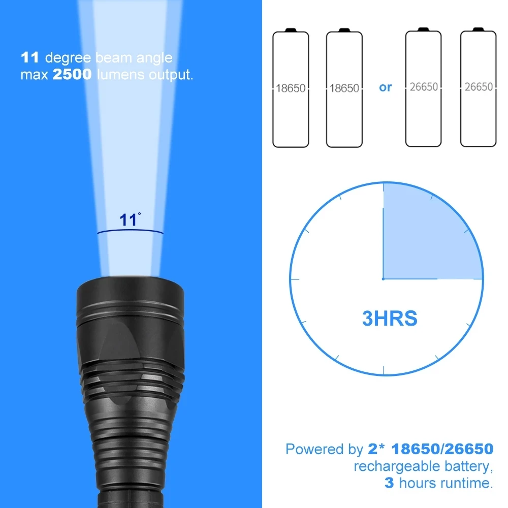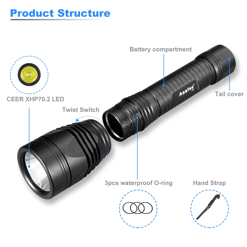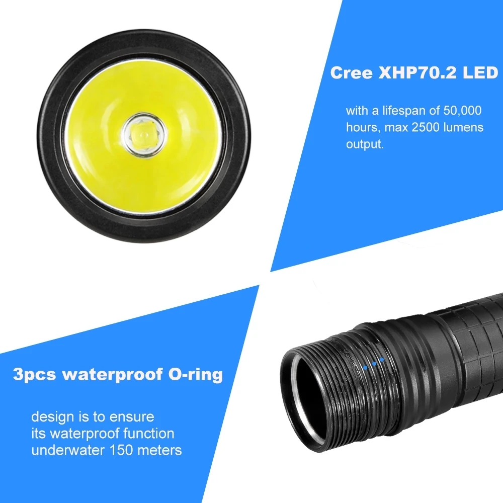 Product Name: Cazadora XHP70 Leistungsstarke Taschenlampe LED Unterwasser 150M Taschenlampe 2500LM Wasserdichte IPX8 Wiederaufladbare Dive Lampe Laterne 26650 Batterie