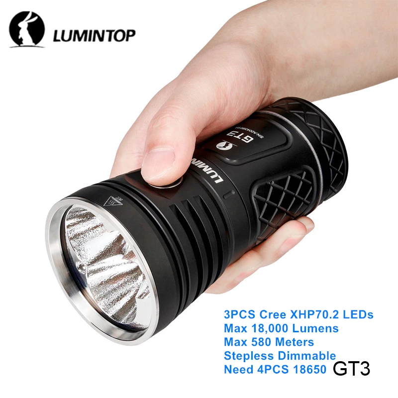 (30%OFF) Verkaufen Lumintop GT3 XHP 70,2 LED Leistungsstarke Camping 18650 Taschenlampe 18000 Lumen 580 Meter Lange Palette Wasserdicht Stufenlos Dimmbar Günstig