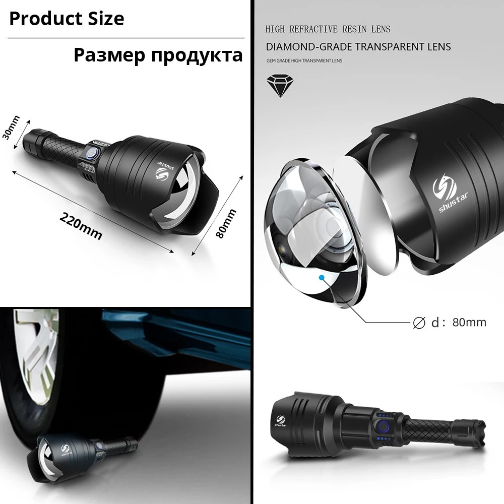 Product Name: Super 7-Core P10 LED Taschenlampe Mit übergroßen Konvexen Objektiv Blendung Abenteuer Beleuchtung Mit Power Bank Funktion Durch 18650 Batterie