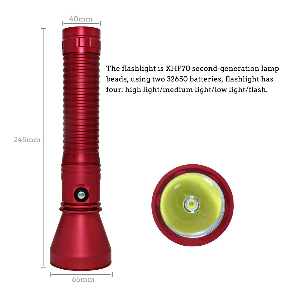 Product Name: Uranusfire XHP 70,2 LED Tauchen Taschenlampe Wasserdichte IP68 Unterwasser 100M Dive Taschenlampe Leistungsstarke 8v Taucher XHP 70,2 32650 Lampe