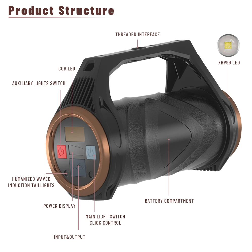 Product Name: XHP99 Leistungsstarke Taschenlampe Multifunktionale Nacht Angeln Licht Ultra Helle Lanter USB Aufladbare Taschenlampe Camping Angeln