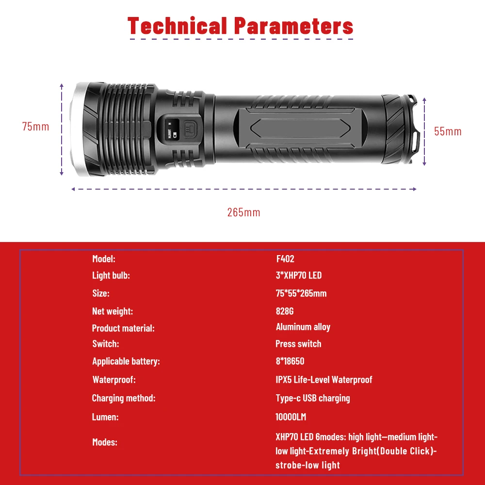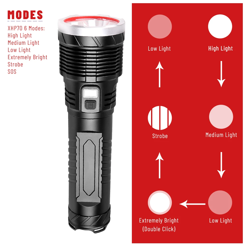 Product Name: 10000LM XHP70 Ultra Helle Lanter Leistungsstarke Taktische Taschenlampe USB Aufladbare Taschenlampe IPX5 Wasserdichte Lampe Camping Jagd