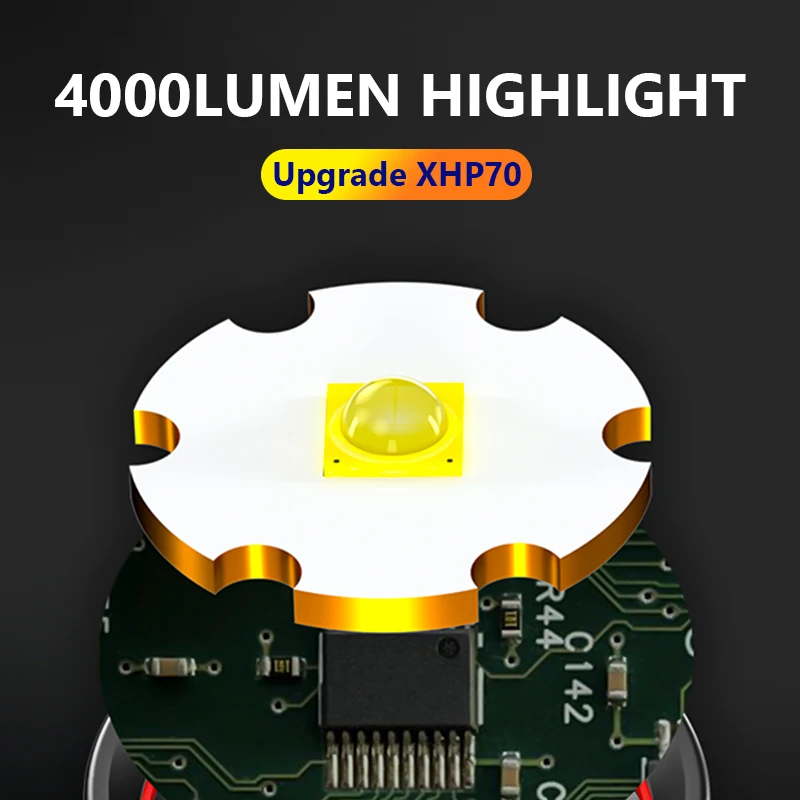 Product Name: Super Helle 4000LM XHP70 LED Wiederaufladbare LED Taschenlampe Kühner Handheld Taschenlampe IPX5 Wasserdichte 5 Licht Modi Telefon Lade