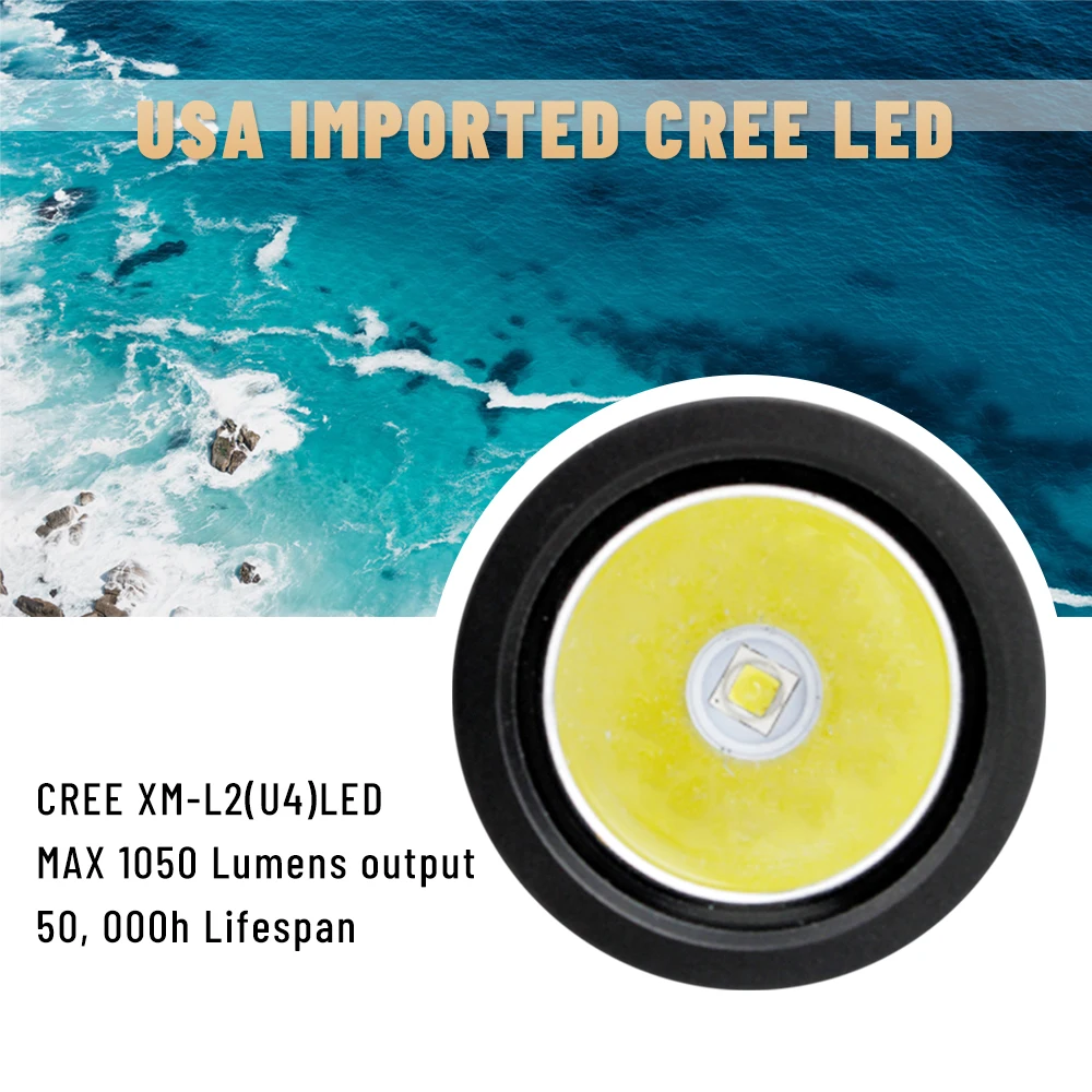 Product Name: Leistungsstarke LED Taschenlampe Tauchen Taschenlampe Handliche Taucher Taschenlampe XM-L2 (U4) LED IPX8 Wasserdichte Täglichen 18650 Dive Backup Licht