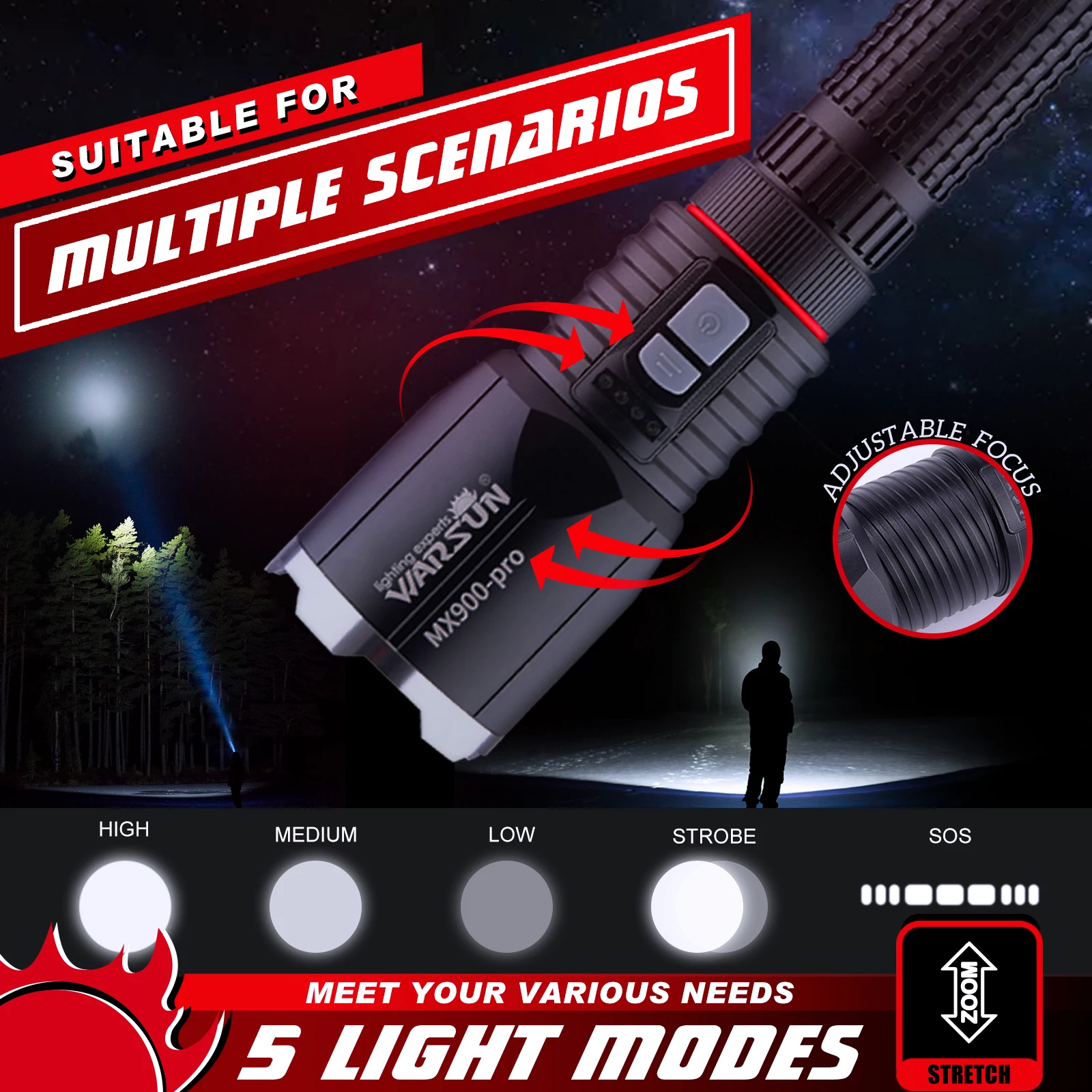 Product Name: WARSUN MX900 Taktische Aufladbare High Power LED Taschenlampe Super Helle 2650 Lumen, Outdoor Notfall, Camping, Wandern.